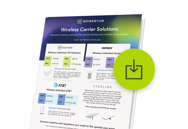 Momentum manages provisioning, setup, bandwidth alerts, troubleshooting, and support as your single connectivity partner.