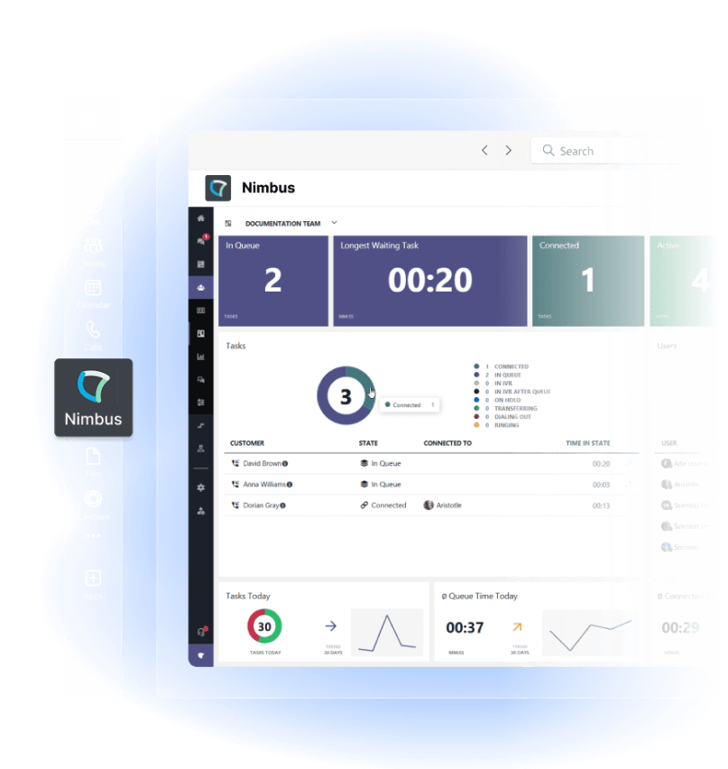 - Real-time visibility & analytics: Monitor queues, agents, and customer experience in real time.